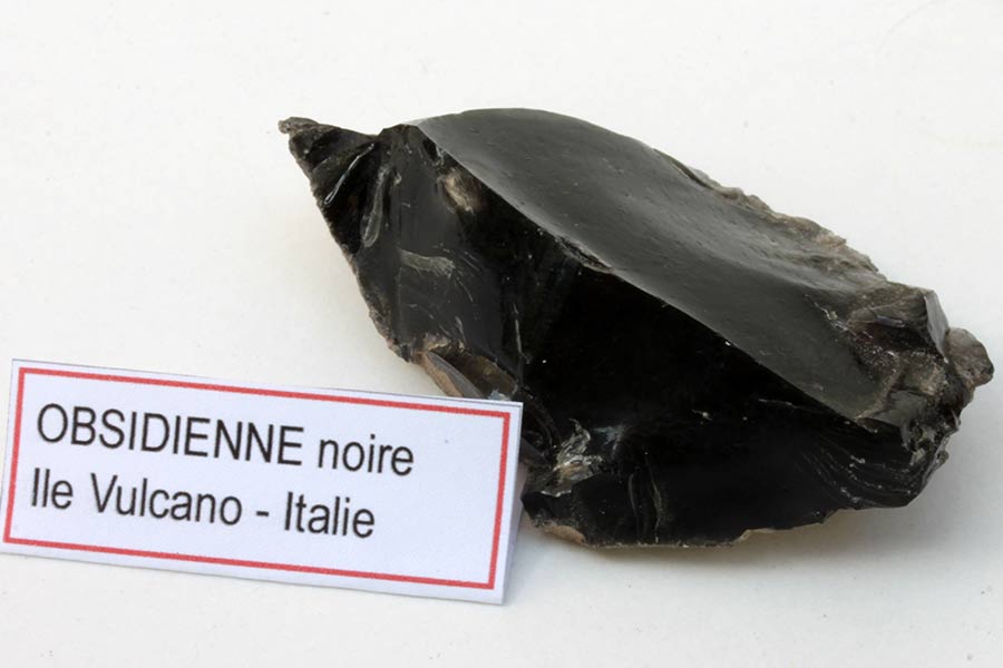 BARITINE Jaune miel ou cercueil - Rte de St-Saturnin à Olloix et OBSIDIENNE Noire - Ile Vulcano - Italie