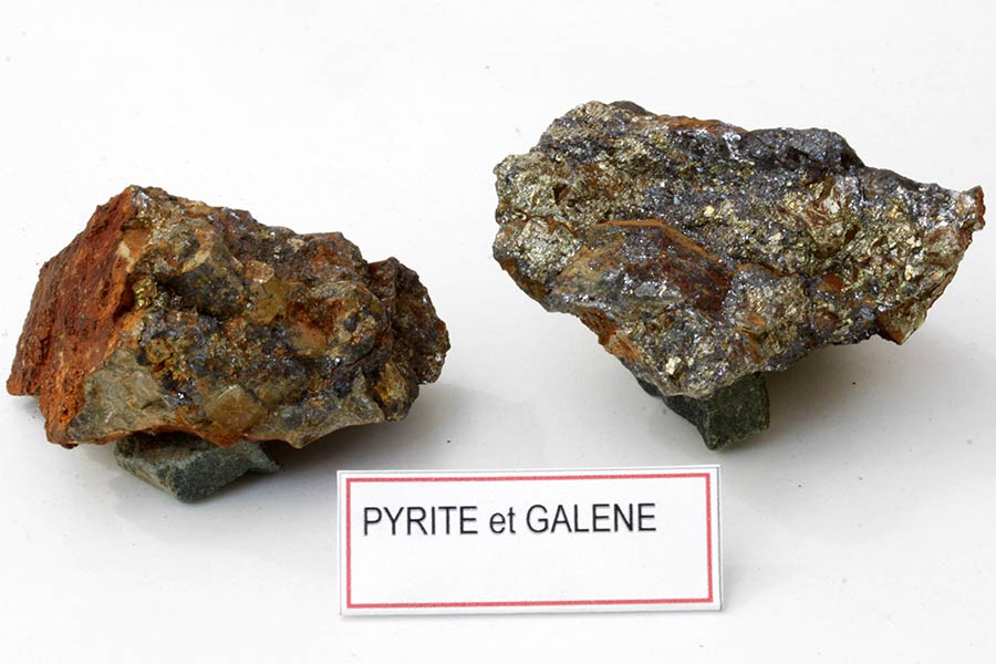PYRITE et GALENE et à droite ARAGONITE - Bastennes - Landes